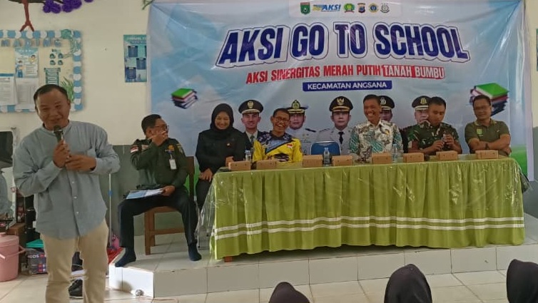 BATULICIN – Pemerintah Kabupaten Tanah Bumbu bekerja sama dengan Kodim 1022/Tnb, Polres Tanah Bumbu, dan KPU Tanah Bumbu menggelar kegiatan Aksi Go To School sebagai bagian dari rangkaian Aksi Sinergitas Merah Putih. Kegiatan ini dilaksanakan di Kecamatan Angsana, Jumat (14/11/2025).