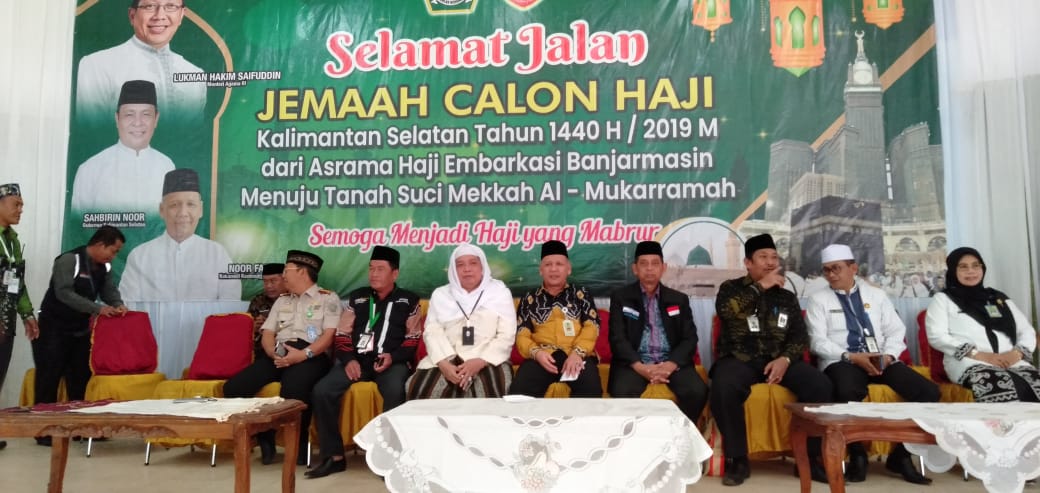 Pelepasan pemberangkatan dilakukan langsung oleh Ketua Panitia Penyelengara Ibadah Haji (PPIH) Embarkasi Banjarmasin H Noor Fahmi di Gedung Jeddah Embarkasi Banjarmasin, Jum’at (19/07/2019).