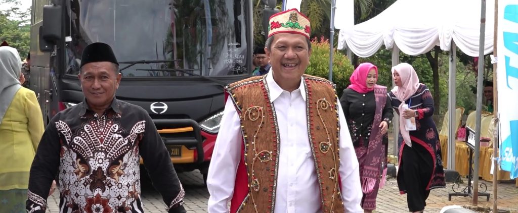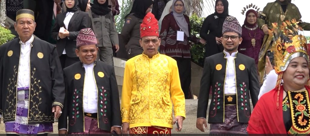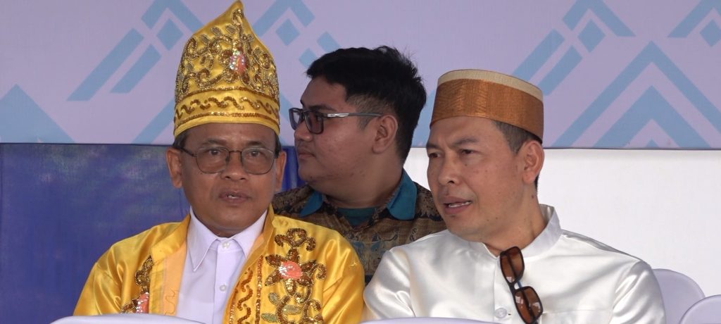 Bupati Tanah Bumbu, Andi Rudi Latif (Bang Arul), bersama Wakil Bupati H. Bahsanudin, Forkopimda, dan tamu undangan, menyaksikan pertunjukan tari kolosal yang dibawakan oleh Sanggar Sidi Batuah dari Perkumpulan Dayak Meratus, binaan Disbudporapar Tanah Bumbu.