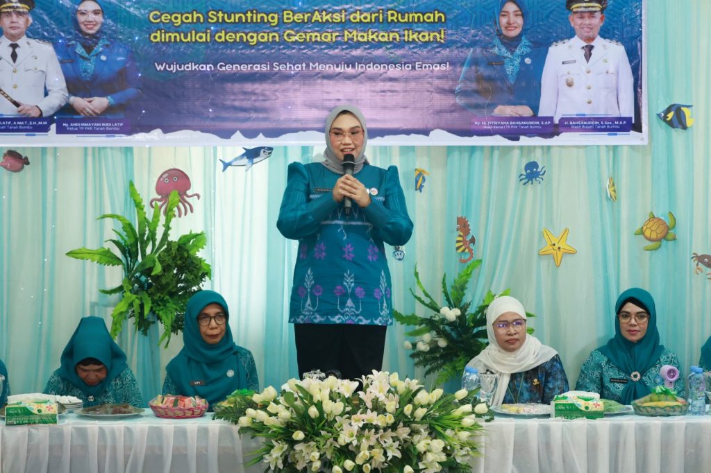 Ketua TP PKK Tanbu, Andi Irmayani Rudi Latif, menegaskan pentingnya ikan sebagai sumber gizi bagi tumbuh kembang anak.