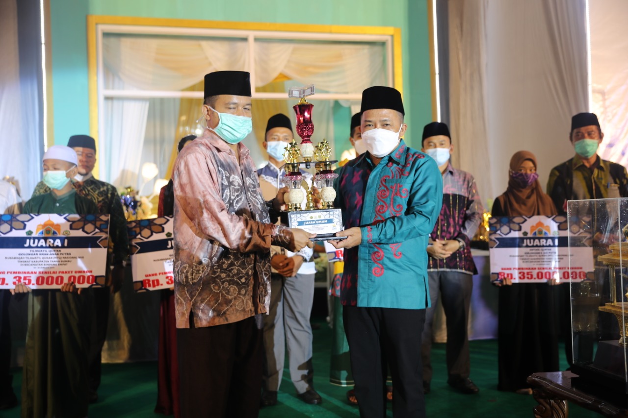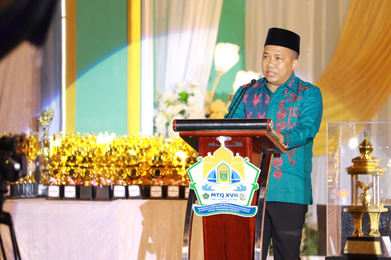 BATULICIN – Bupati Tanah Bumbu H. Sudian Noor menutup kegiatan Musabaqah Tilawatil Qur’an (MTQ) ke-17 Tahun 2021 Tingkat Tingkat Kabupaten Tanah Bumbu yang dilaksanakan di Halaman Masjid Darul Azhar Jalan Batu Benawa, Kecamatan Simpang Empat, Minggu (31/01/2021) malam.