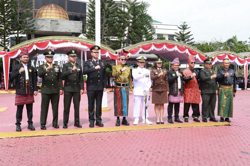 BATULICIN – Pemerintah Kabupaten Tanah Bumbu menggelar Upacara memperingati Hari Pahlawan Tahun 2025 di lapangan Kantor Bupati di Batulicin, Senin (10/11/2025). Menariknya, para pejabat dan tamu undangan mengenakan pakaian adat dari berbagai daerah di Indonesia.